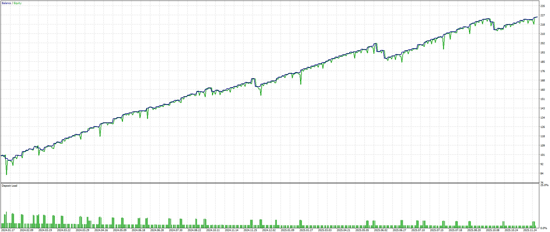 | XAUUSD – M5 Only Long | 6.5% | 3.68 | 97.0% | ![]() |