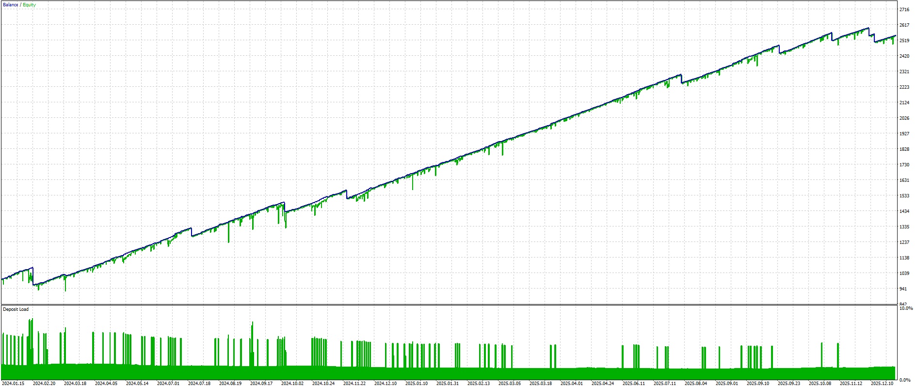 Backtest results of Zeus XAUUSD M5 Long Only